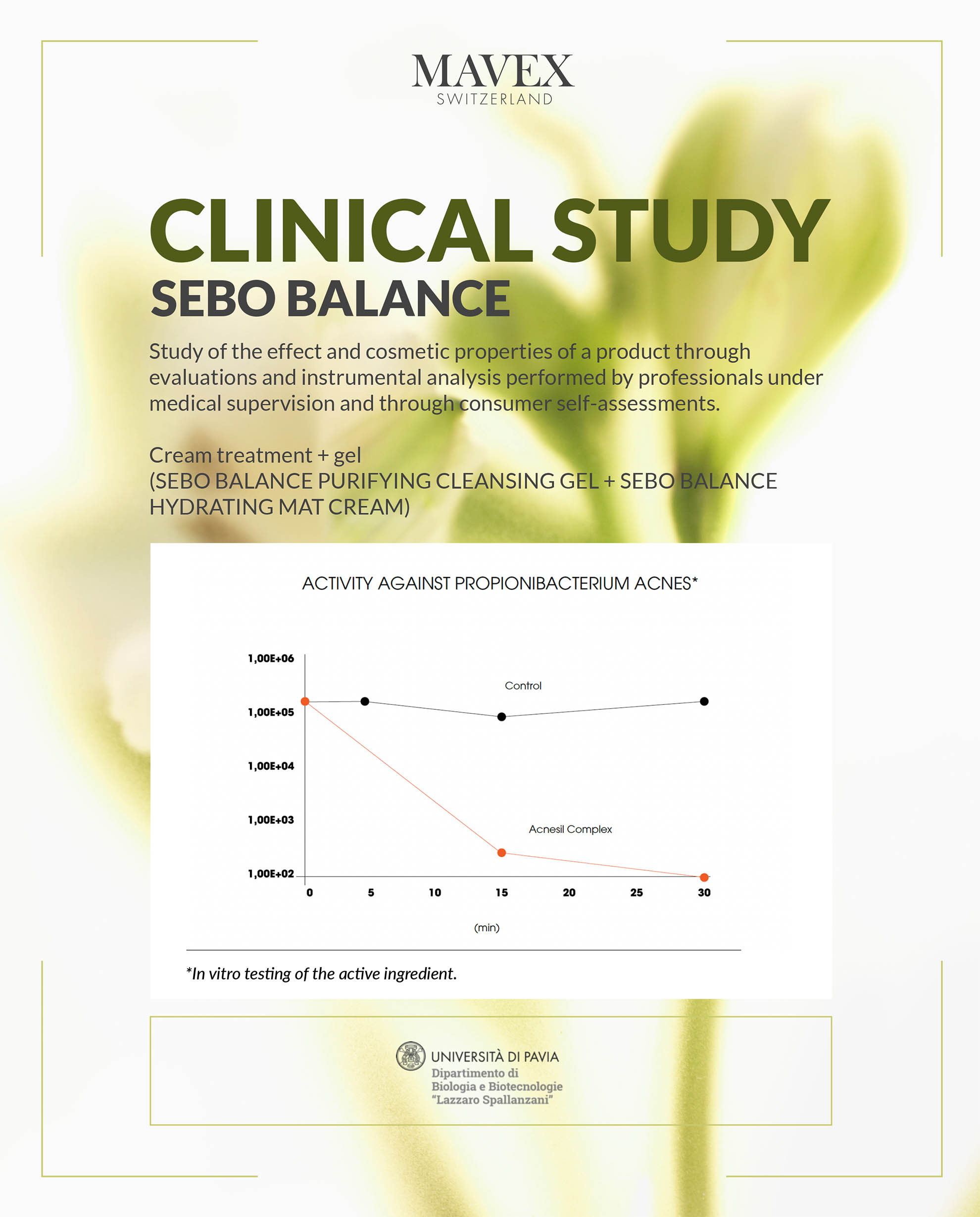 I risultati ottenuti dimostrano un effetto sebo-riequilibrante, un effetto nel ridurre il volume e rossore delle imperfezioni, nel ridurre la visibilità dei pori e la TEWL del trattamento crema + gel (SEBO BALANCE PURIFYING CLEANSING GEL + SEBO BALANCE HYDRATING MAT CREAM), obiettivo primario della sperimentazione: