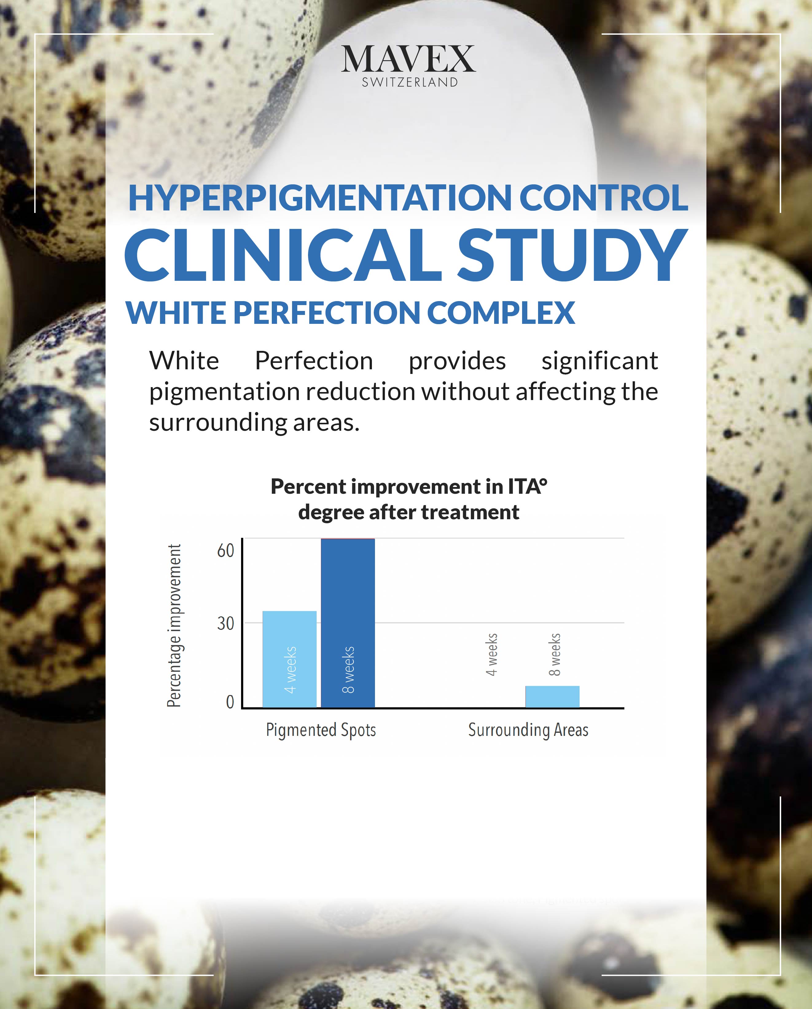 Dalla ricerca dei Laboratori Mavex in Svizzera nasce WHITE PERFECTION, miscela ad azione sinergica di 24 principi attivi ad alta efficacia contro le macchie cutanee e i segni dell’invecchiamento, assemblati in emulsione con l’innovativa tecnologia Lamellare Biomimetica a Cristalli Liquidi.